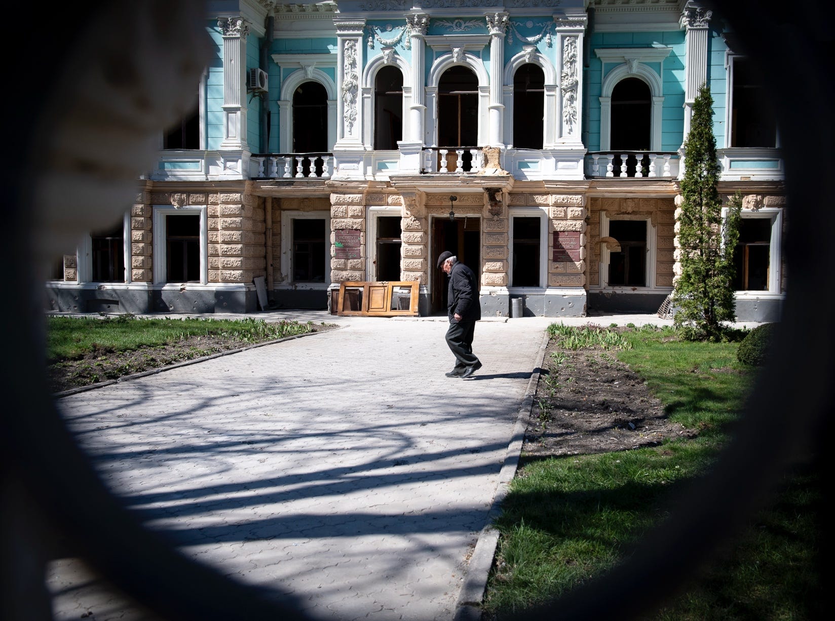 As bulldozers cleared the rubble from the gaping scar of the neo-classical building, thousands of holes left by the deadly cluster munitions were visible in the crumbling facade. An air raid siren began to wail, and for a moment, people paused and glanced nervously at the sky before resuming their Sisyphean task of clearing the wreckage.